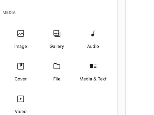 Alternatively, you can click on the ‘+’ icon to add a standard WordPress audio block. You’ll find the audio block under “Media” in the block inserter: