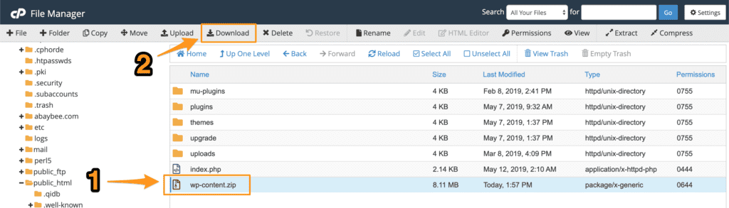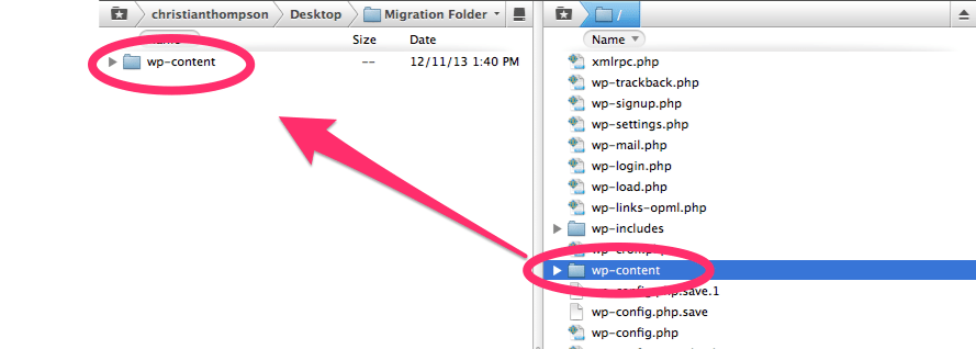 wp-contentfolder to your local computer by dragging it from the right side to the left, just like you would on your computer.