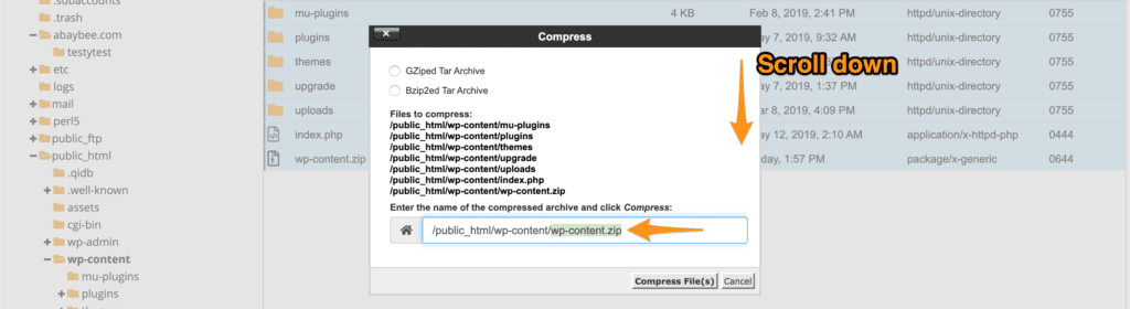 - Scroll down in the Compress dialogue box to locate a name text field. Be sure the file name reads